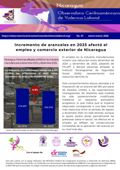 Es un espacio de monitoreo y análisis sobre la violencia laboral en la región centroamericana, con énfasis en la violencia laboral que ocurre en las zonas francas de Guatemala, El Salvador, Honduras y Nicaragua.